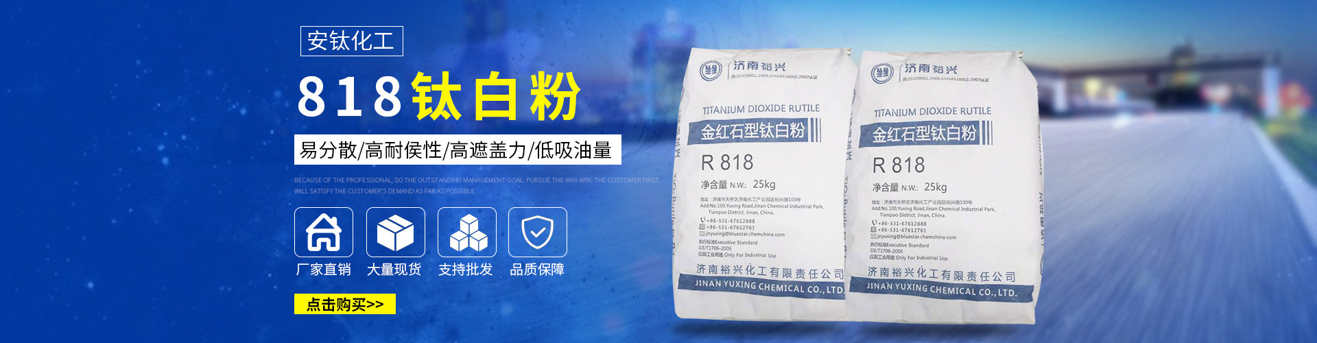 常州安鈦化工有限公司經銷批發的鈦白粉、沉淀硫酸鋇、立德粉、滑石粉、高嶺土、炭黑、云母粉、彩色顏料、氫氧化鈣、硅微粉、氧化鐵紅、氧化鐵黑、金紅石型鈦白粉、銳鈦型鈦白粉、進口鈦白粉暢銷消費者市場,在消費者當中享有較高的地位,公司與多家零售商和代理商建立了長期穩定的合作關系。常州安鈦化工有限公司經銷的鈦白粉、沉淀硫酸鋇、立德粉、滑石粉、高嶺土、炭黑、云母粉、彩色顏料、氫氧化鈣、硅微粉、氧化鐵紅、氧化鐵黑、金紅石型鈦白粉、銳鈦型鈦白粉、進口鈦白粉品種齊全、價格合理。常州安鈦化工有限公司實力雄厚,重信用、守合同、保證產品質量,以多品種經營特色和薄利多銷的原則,贏得了廣大客戶的信任。